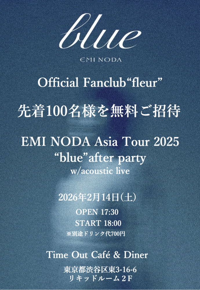 EMI NODA Asia Tour 2025 “blue”after partyの受付が本日16時から開始されました!