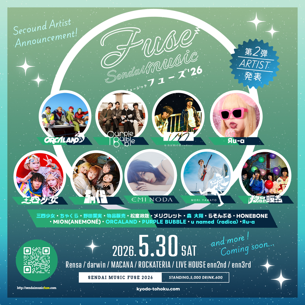 2026年5月30日(土) @仙台市内6会場 チケットはこちら https://l-tike.com/smf2026/ 詳細はこちら http://sendaimusicfuse.com/ #SMF #SMF2026 #FUSE